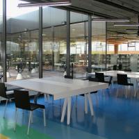 The current building opened in 2009 in the heart of the Dejvice engineering and technology campus after two years of construction. It was designed by the Projektil Architekti studio with the environment in mind. The centerpiece of the award-winning building is a rectangular, five-story open atrium with stairwells and elevators enabling access to all public areas. Over two hundred avant-garde, "comics-style" drawings by the world-renowned artist Dan Perjovschi (one of the only such permanent Perjovschi's installations) adorn the atrium’s concrete parapets. Our building was featured in Eric Baldwin's Temples of Knowledge: 8 Unique National Libraries Across the World.